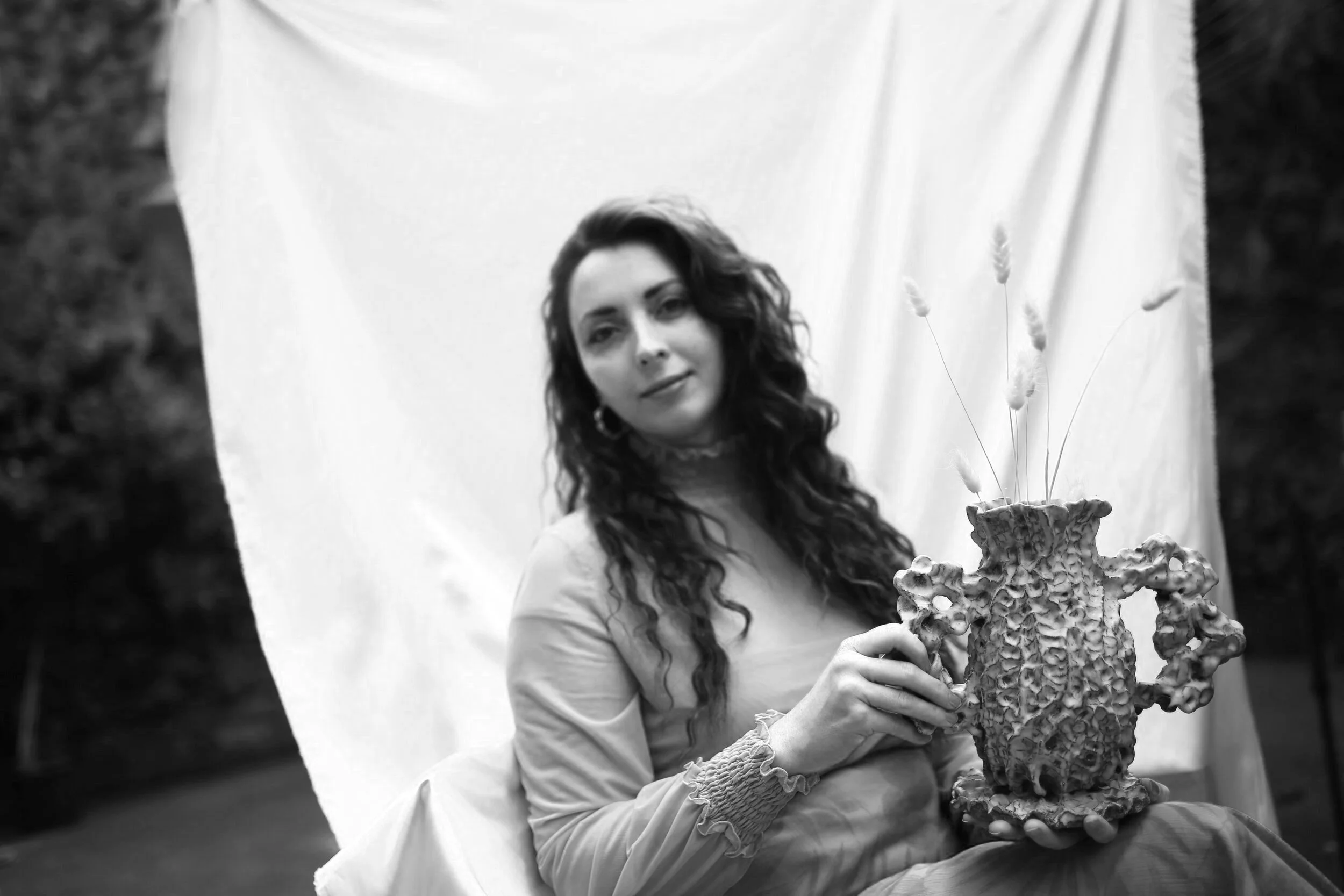 Hilary Green is a Melbourne based, multidisciplinary artist working with clay, paint and film. Her work explores organic forms, and the concept of human manipulations of nature and colour. Her sculptural forms manifest mystical ancient shapes mixed with modern colours, playful positions and textures reminiscent of natural elements whilst remaining functional to represent timeless domesticity. Her paintings explore internal landscapes and mystic dreams inspired by feminist ideologies and the emotionality of social media. Her work often tells a story of transformation, imperfection and collective memory over time.